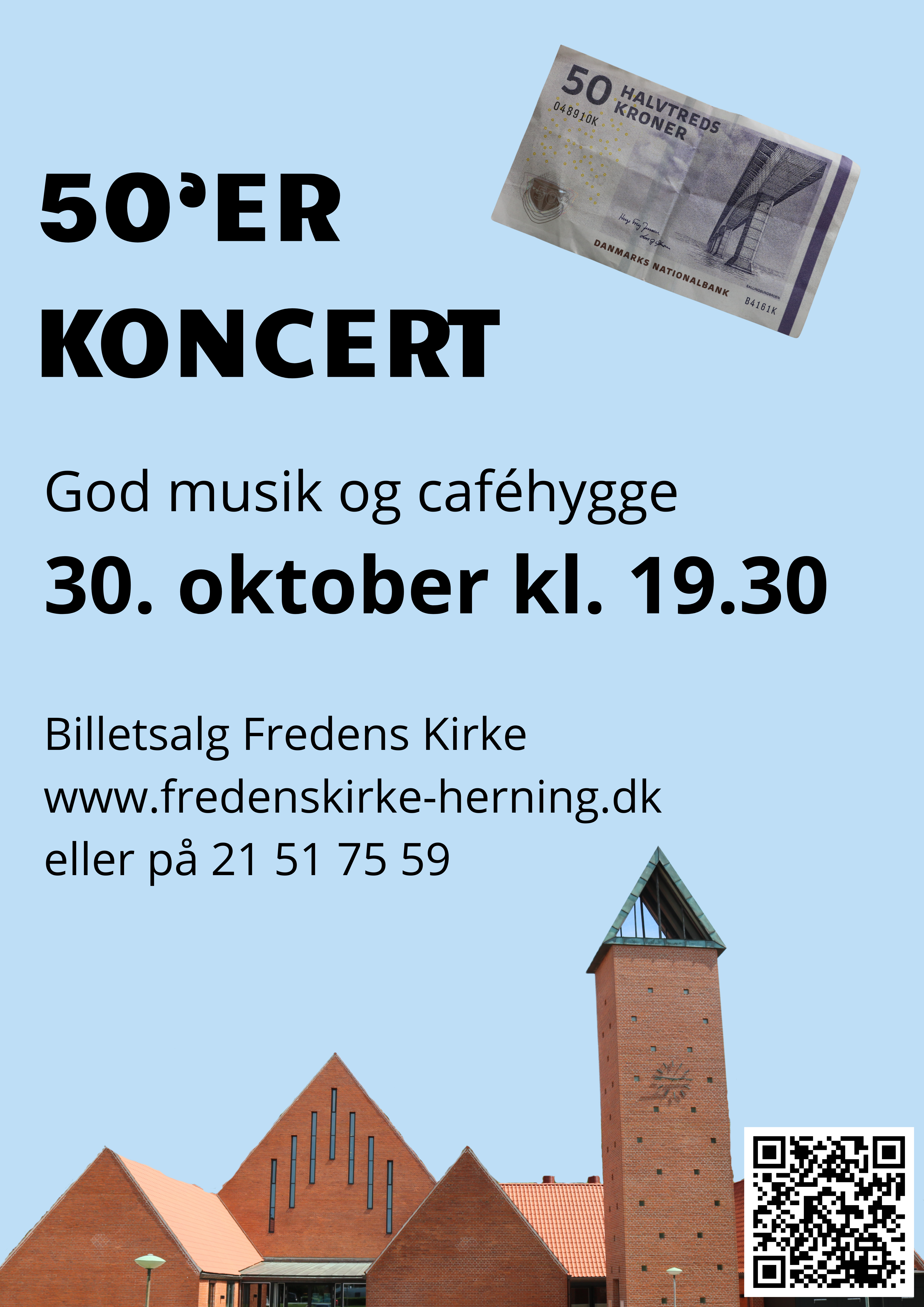 En cafékoncert - fyldt med intens, nærværende musik i øjenhøjde. Der stilles caféborde op og der er mulighed for at købe en kop kaffe eller et glas vin. Denne aften vil musik og livsfortælling gå hånd-i-hånd. Entré: 50 kr. Begrænset antal billetter til salg. Billetsalget åbner d. 1. september. Billetkøb sker på www.fredenskirke-herning.dk, under aktiviteter - koncerter eller ved henvendelse på tlf. 21517559. Der kan betales kontant eller MobilePay (81718 - mrk. 50er aften).